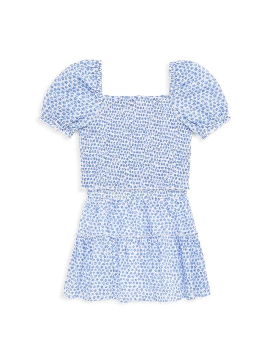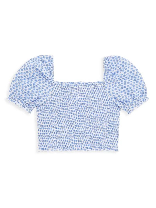 Crafted of cotton, this girl’s crop top features a square neck and balloon short sleeves.