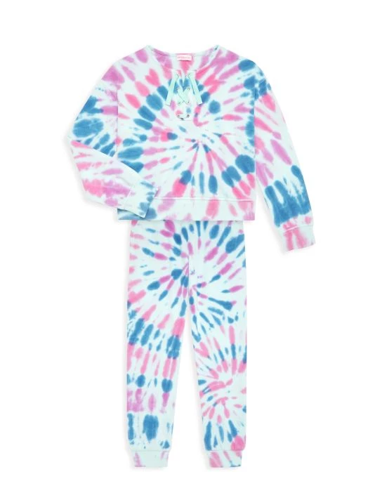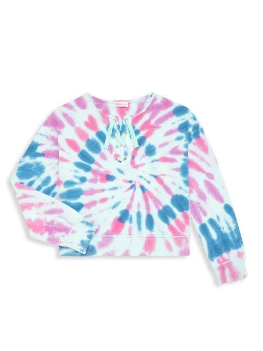 A lattice neckline updates this stretch cotton top, designed with vibrant two-tone tie-dye.