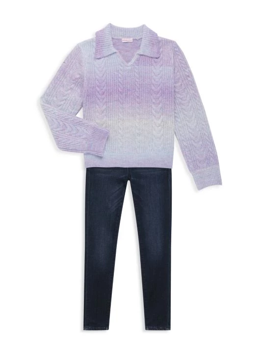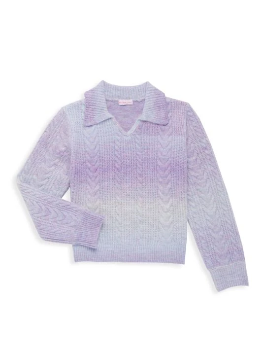Ombré coloring updates this classic cable-knit sweater with a polished collared neckline.