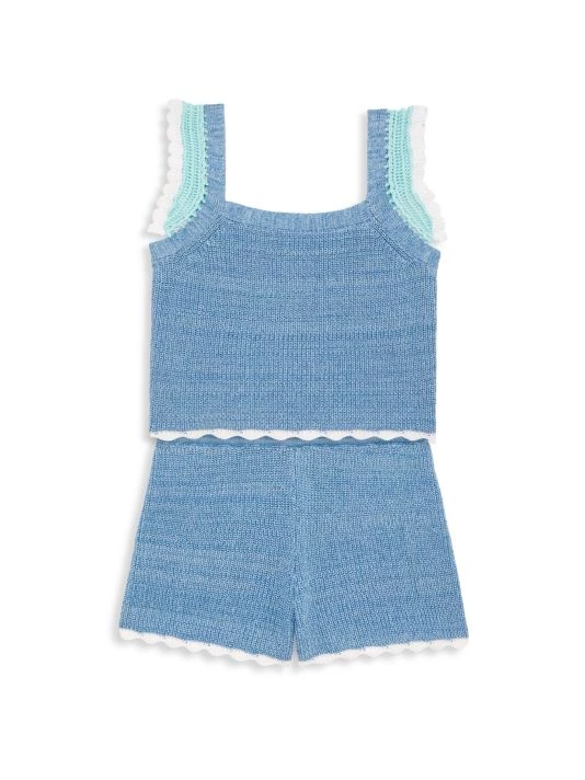 Contrast picot edging trims these cute denim-style knit shorts.