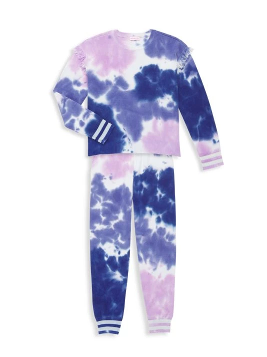 Watercolor tie-dye and ruffles pair in this soft stretch cotton sweatshirt.