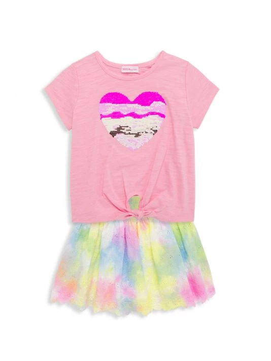 This adorable short-sleeve T-shirt by Design History is crafted of soft cotton. Completed with a tie detail at the hem, this top is styled with colorful sequins in the shape of a heart at the chest.