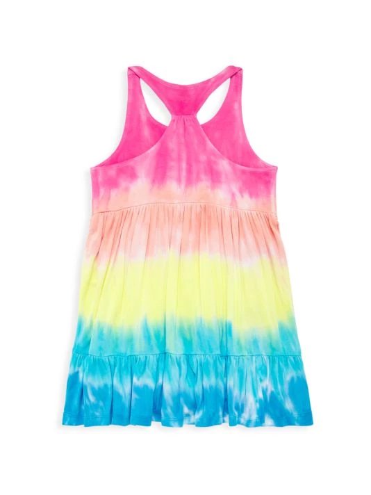 This sleeveless tiered dress by Design History is adorned with a rainbow tie-dye motif.