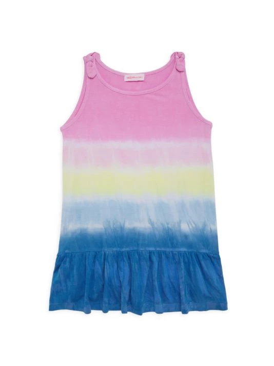 A multicolored gradient effect and ruffled hem define this dress by Design History.