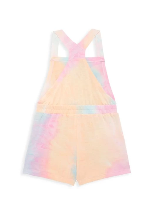 Design History’s French Terry Romper is crafted of a polyester blend and styled in a tie-dye print.