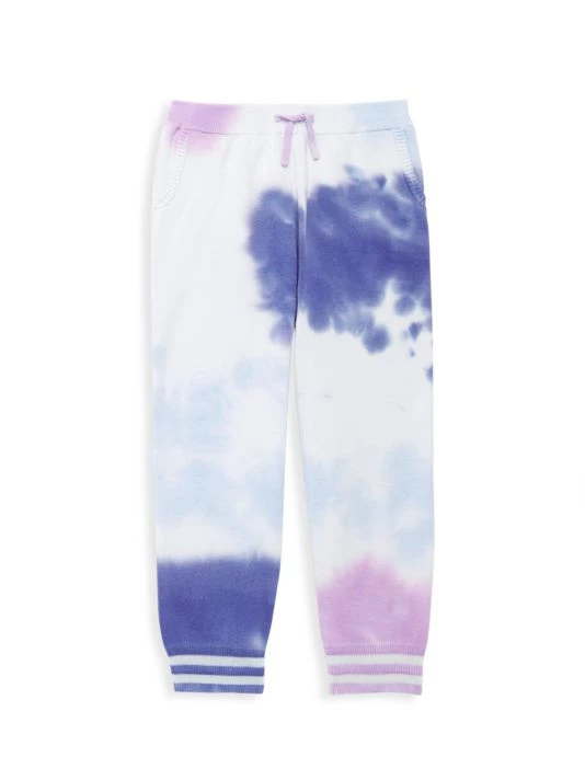 Watercolor tie-dye covers these soft stretch sweatpants with striped cuffs.