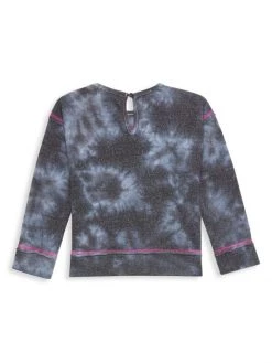 Featuring an allover tie-dye print, this long-sleeve top contrast seams and metallic accents enhance this long-sleeve top.