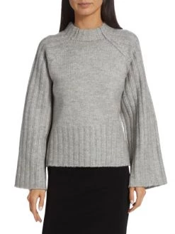Wide ribbed sleeves frame Design History’s funnel-neck sweater, knit to a slightly cropped shape.