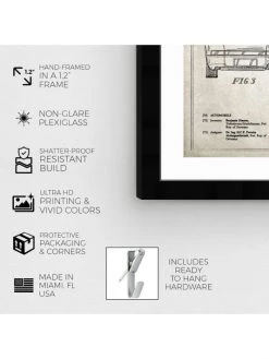 This framed print feature a vintage-inspired automobile technical drawing by the Oliver Gal Artist Co.
