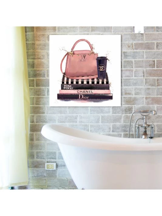 Depicting an iconic handbag on top of sleek fashion coffee table books, this canvas art print is simply fabulous.