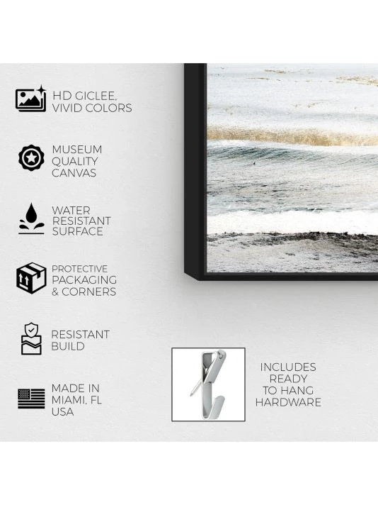 Abstract beach landscape by the Oliver Gal Artist Company. Giclée on canvas, hand-stretched and set within a black floating frame. Arrives ready to hang with hardware included.