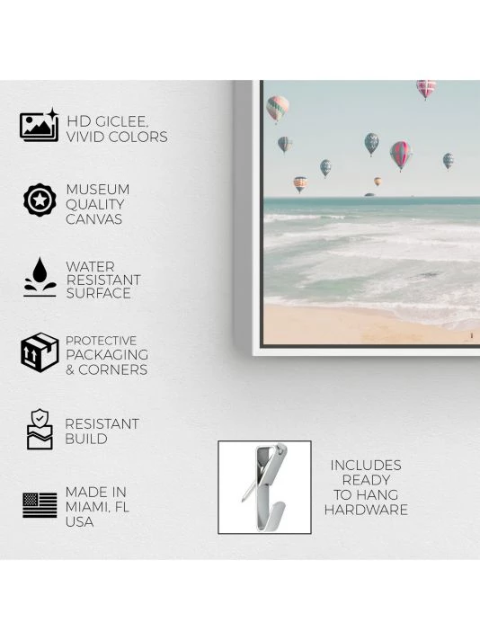 Travel and beachside scenescape by the Oliver Gal Artist Company. Giclée on canvas, hand-stretched and set within a white floating frame. Arrives ready to hang with hardware included.