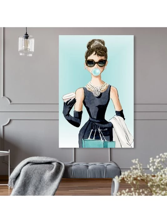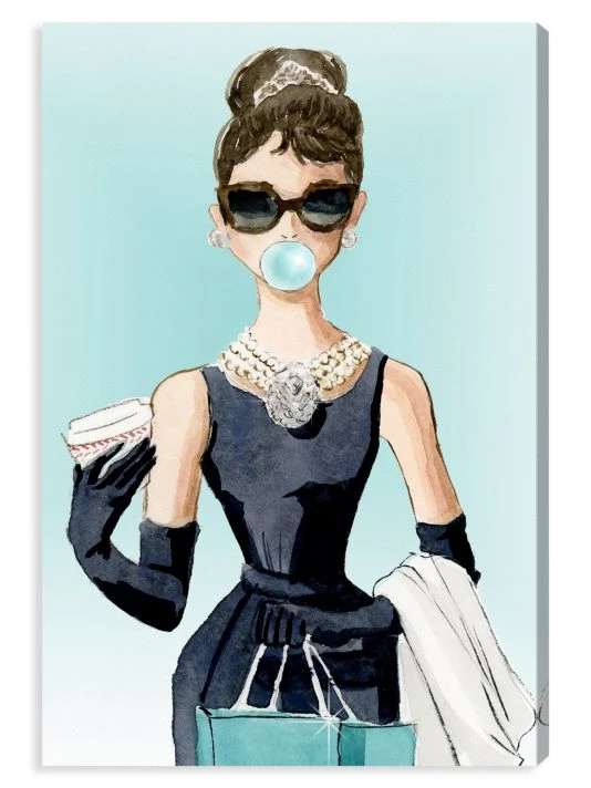 Showcasing an iconic fashionista, this canvas print takes on a playful essence with a pop of bubble gum imagery.