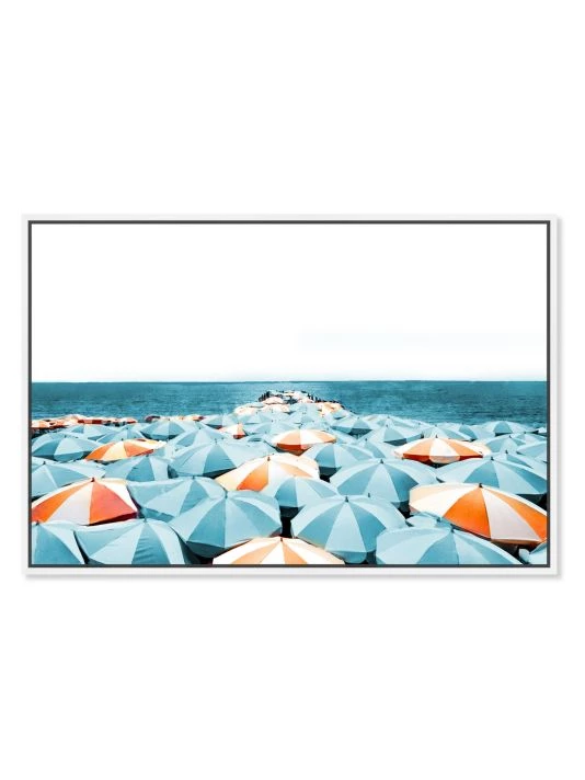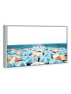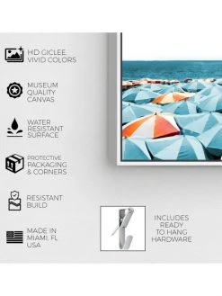 Glamour-inspired beachside scenescape by the Oliver Gal Artist Company. Giclée on canvas, hand-stretched and set within a white floating frame. Arrives ready to hang with hardware included.
