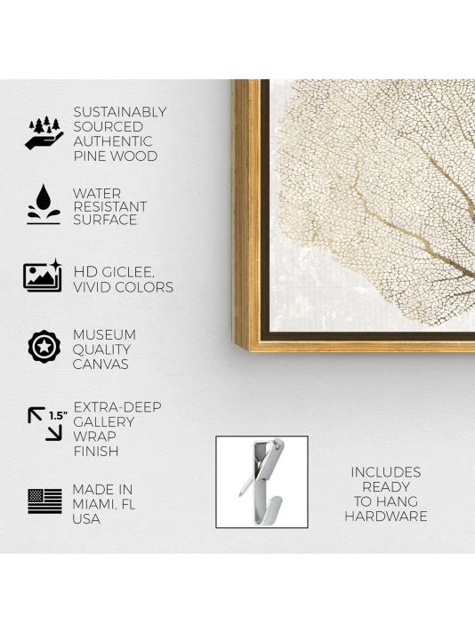 Sophisticated and stylized sea life icon by the Oliver Gal Artist Company. Giclée on canvas, hand-stretched and set within a gold floating frame. Arrives ready to hang with hardware included.