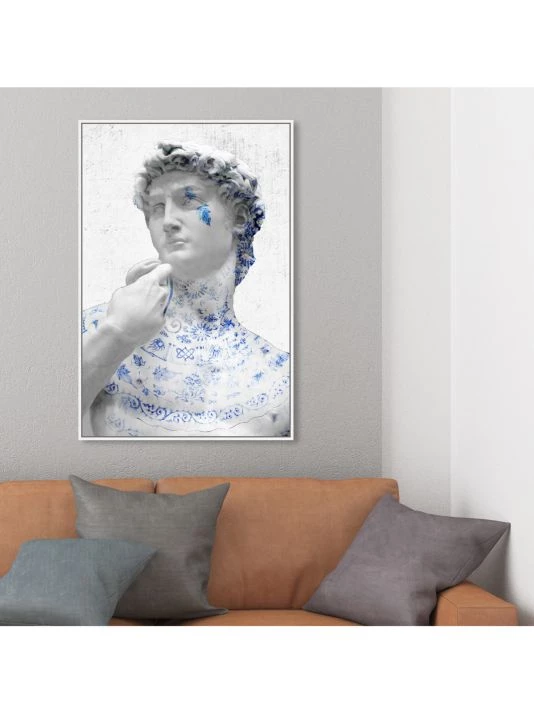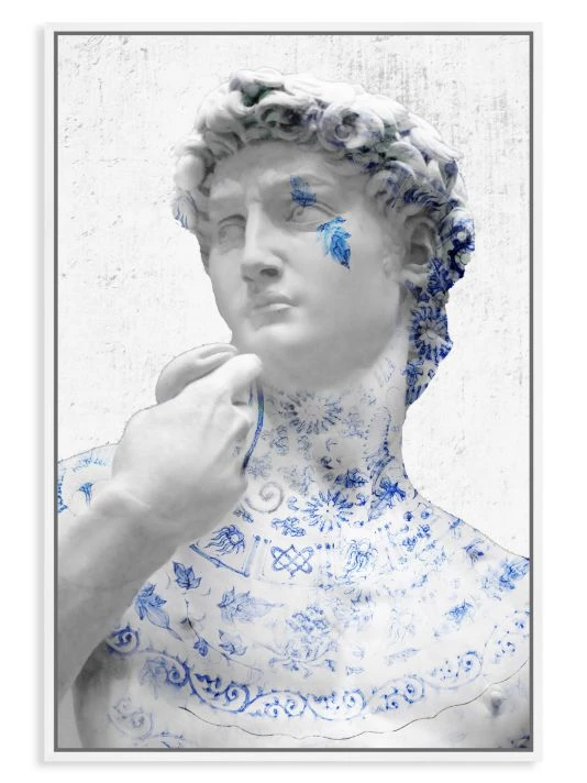 Refined canvas print of the statue of David with a faded porcelain print finish.