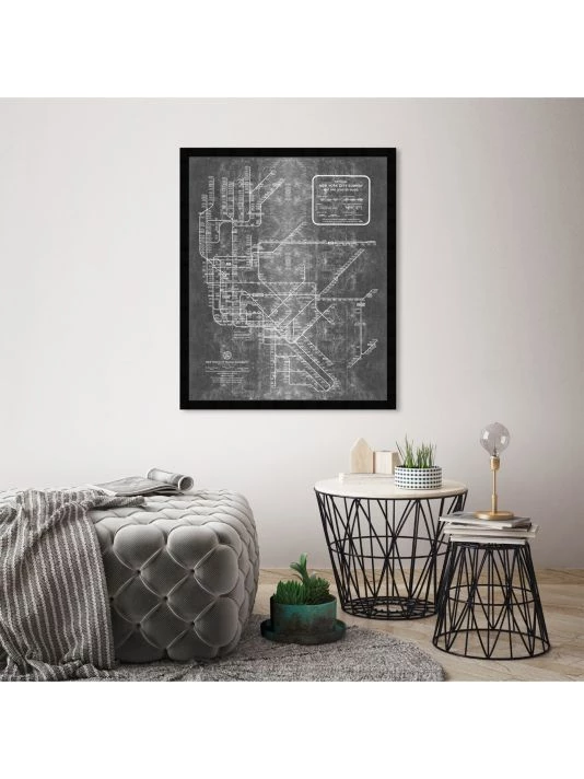 This framed vintage-inspired New York subway map by the Oliver Gal Artist Company arrives ready to hang with hardware included.