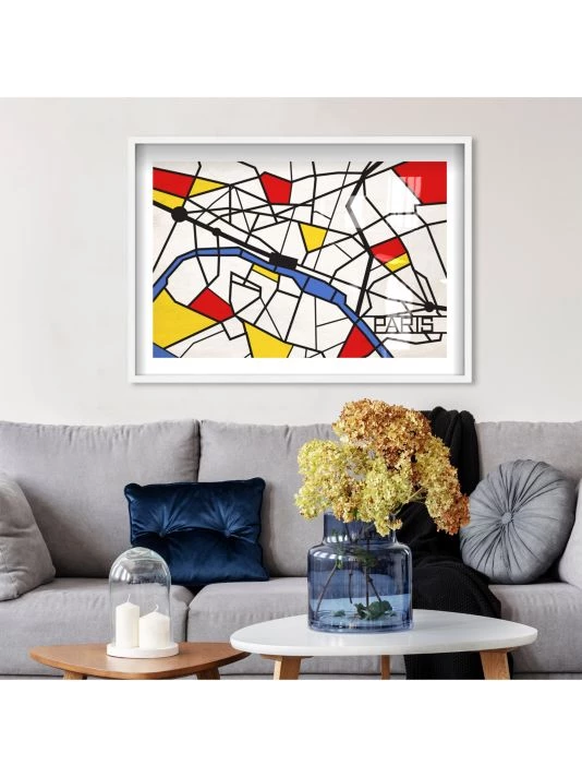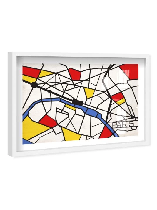 Professionally mounted within a shadowbox frame, this glossy art print features a colorful pop art-inspired city map by the Oliver Gal Artist Co.