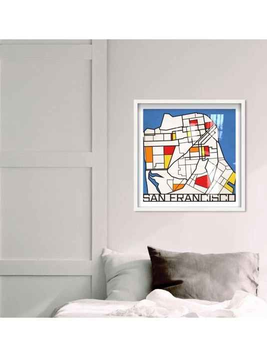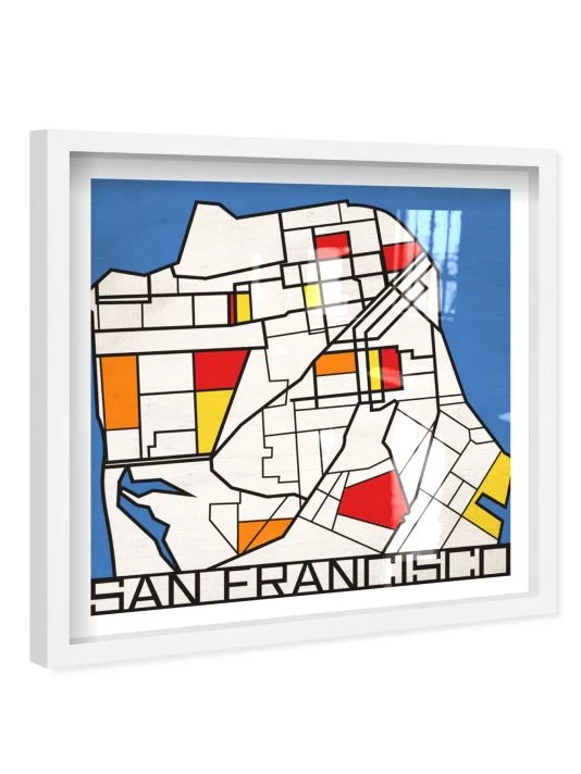 Professionally mounted within a shadowbox frame, this glossy art print features a colorful pop art-inspired city map by the Oliver Gal Artist Co.