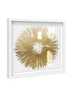 Professionally mounted within a glossy shadowbox frame, this floating art print features a sophisticated abstract sunburst by the Oliver Gal Artist Co.