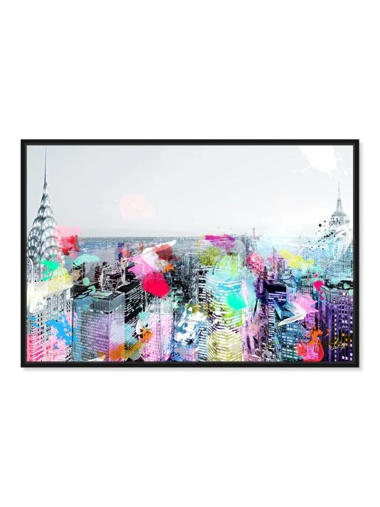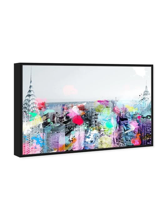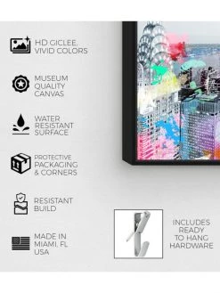 Hand-stretched and set within a floating frame, this giclée print features a stylized graffiti cityscape by the Oliver Gal Artist Co.